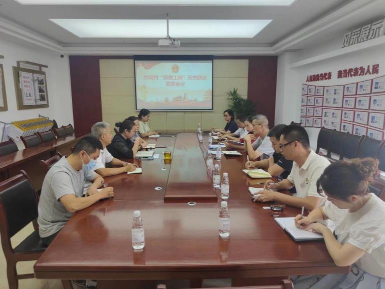 聚焦五方联动,共筑幸福家园。在共同村社区“五方联动”联席会上,社区书记蔡琼通报了近期社区共同缔造相关工作推进情况,小区党支部第一书记周刚就筑堡工程当前重点工作进行了安排布置,并征求各方意见。参会人员围绕如何规范生活垃圾分类,稳步提升小区生活垃圾分类质效;如何发挥中医专业优势,推进社区卫生服务中心设置名医工作室等问题进行了充分讨论,就组建垃圾分类志愿服务队和建设社区名医工作室提出了积极建议,助力社区“筑堡工程”落地见效,造福社区广大居民。