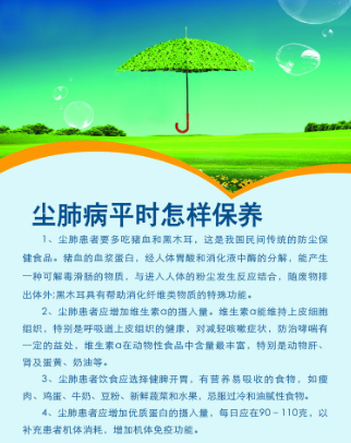 7、精神和心理的康复:对尘肺病有正确的认识,消除疑虑、恐慌、悲观心理,积极有效的配合治疗。