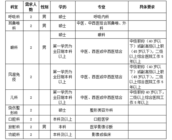 电子简历按应聘科室-学历-姓名-性别-所学专业-毕业院校填写标题,投递至邮箱:277365740@qq.com。简历投递截止时间为2019年2月28日。