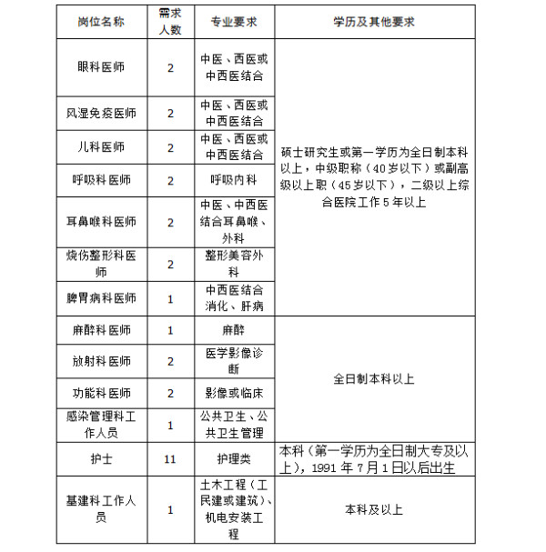 一、博士研究生需求:医学博士不限专业、不限人数,常年招聘。