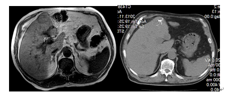 (二)、患者、男、68岁,2013年11月发现肝癌术后5年复发,因患者肾功能不全,不适宜外科手术及血管内介入治疗,在我院行CT引导下射频消融治疗,术后结合中药治疗目前病情稳定。