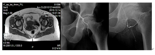 典型病例:女、63岁,2010年10月在我院MR检查发现双侧股骨头缺血性坏死II期,行三次介入术后。2014年复查提示病变基本愈合。
