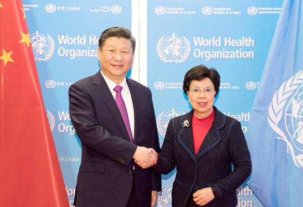 习近平出席中国向世卫组织赠送针灸铜人雕塑仪式
