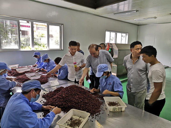 考察团一行随后考察了松北镇玄参、党参种植基地,该基地目前已种植玄参1000亩,党参800亩,并严格按照GAP种植技术规范要求,采取“集约化种植基地+家庭农场、专业大户、农民专业合社+特色加工聚群工厂+药企营销网络”的发展模式。同时,通过实施产业扶贫、旅游扶贫和中药材产业链融合联动扶贫,打造循环经济全产业链,有效带动了当地群众增收。周林峰指出,神农架不仅中药材资源丰富,而且产业规划也很好,带动群众增收十分明显,特别是全产业链的发展模式和种植经验值得学习借鉴。目前,凤凰溪村脱贫攻坚已取得阶段性成效,为巩固好脱贫攻坚成果,下一步要充分学习借鉴神农架中药材产业发展经验和发展模式,在种植品种选择、标准化管理、粗加工等方面多与中药材企业联系沟通,并后期在药材种植成功的情况下,加强与中药加工销售企业的对接联络,以销定产,调动群众的积极性。同时建立完善粗加工车间,做好后期品种选择,逐步开展标准化种植,不让中药材产业成为老百姓负担。村两委和工作队也纷纷表示,会将此次考察学习到的经验与方法带到实践中,科学规范地带领群众发展中药材产业,持之以恒地抓好当地中药材产业发展。