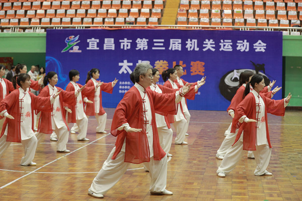 10月29日,宜昌市第三届机关运动会太极拳比赛在市体育馆举行,来自市直各单位的15支代表队,共计416名队员参与角逐,我院太极拳队代表市卫健委参加了本次比赛。
