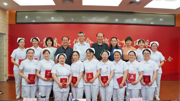 会议伊始,院长周刚代表医院向广大团员青年及护理工作者致以节日的问候,勉励大家在今后的工作中立标杆、担责任、精技术、追艺术,继续以昂扬的斗志和饱满的精神,在平凡岗位上创造出不平凡的成绩,为医院中医药事业发展做出更新更大的贡献。随后,纪委书记李玉倩宣读了表彰文件,院领导为21名优秀护理工作者、10名星级护士、2个五四红旗团支部、11名优秀共青团干部、14名优秀共青团员颁发了荣誉证书。7名优秀团员青年及护理工作者代表现场分享讲述了自身在实际学习、工作、生活中的所思、所为、所感,通过他们的讲述让大家了解到身边的团员青年及护理工作者勤于学习、刻苦钻研,积极发挥中医优势、发展传统技术的青春担当与作为。