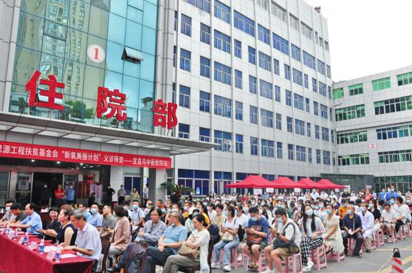 为向建党百年献礼,践行初心使命,让革命老区人民共享优质医疗资源及成果。7月25日上午,由中华思源工程扶贫基金会、中国民主建国会湖北省委员会主办,我院承办的“红色初心 还原美丽——‘新氧美丽计划’义诊活动”在院内广场圆满举办,中华思源工程扶贫基金会副秘书长陈颖、中国民主建国会宜昌市委员会副主委徐姗、华中科技大学附属协和医院整形外科主任孙家明、北京新氧科技有限公司副总裁刘蓉、我院院长周刚等领导及专家出席了本次活动开幕式。