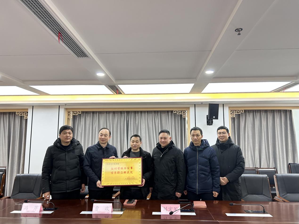 1月23日,屈原镇党委书记朱圣鹏及屈原镇凤凰溪村党总支书记乔长军代表屈原镇党委政府、凤凰溪村全体村民将一块印有“驻村帮扶办实事、情系群众解民忧”的牌匾送到我院党委书记曹政手中,以感谢我院及驻村工作队员在凤凰溪村巩固脱贫攻坚成果同乡村振兴有效衔接的工作中给予的大力支持和帮助。