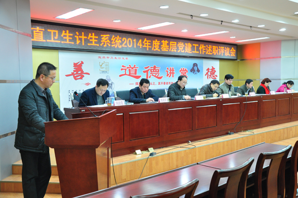 院党委书记邱绍勤同志代表医院党委就宜昌市中医医院2014年党建工作情况向市卫计委党组作了述职汇报,突出我院在党建基础工作、党员深入服务群众发挥模范作用等方面的工作亮点,通过一系列学习、实践活动,增强了医院党建工作活力。深入分析目前存在的问题,抓重点,找原因,并结合我院发展前景和实际情况提出新的工作思路,表示将进一步提升党建工作科学化水平、引导党员发挥示范作用、加强党建工作长效机制建设。不断增强职工主人翁意识,提升凝聚力。