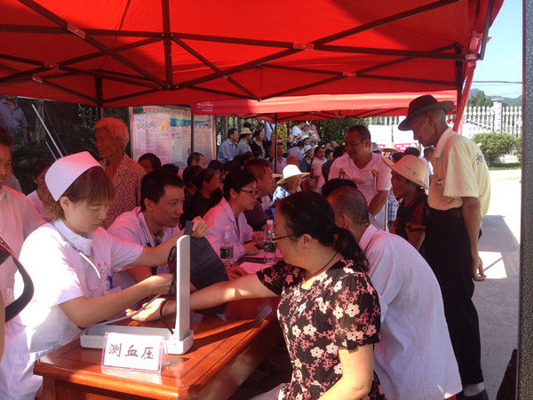 为深入落实“服务百姓健康行动”,方便基层群众在家门口看病就医,全面推进中医药服务履职尽责工作, 2015年8月20日上午,我院组织心血管科、呼吸科、肿瘤科、骨伤科、耳鼻喉科、妇科、功能科、护理部等8名专家走进点军区联棚乡长岭村开展了义诊和健康咨询服务。当天共接诊病人120余人,免费彩超检查20人,测血压100人次,发放200余份医院中医养生保健宣传资料。