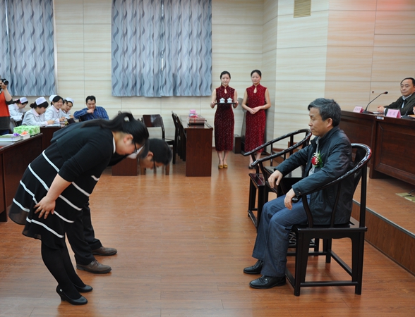 拜师仪式首先由学生向导师冯家鑫、梅和平行拜师礼,然后敬拜师茶,接着师生互赠礼物,最后师徒签订了培养协议书,并合影留念。