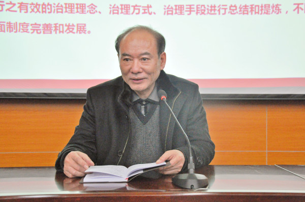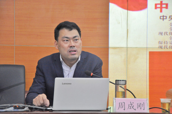 1月8日下午,我院举办党的十九届四中全会精神宣讲报告会,市委宣讲团成员、市网格管理监管中心主任周成刚同志作专题辅导,院党委书记周林峰同志主持会议。