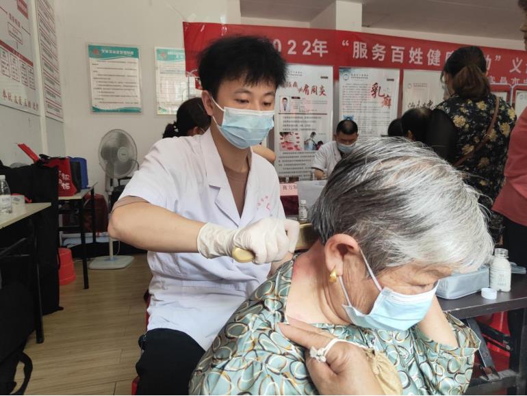 强化责任担当,发挥专业特长。根据社区居民对诊疗服务的需求,医院组织脾胃病、骨伤、耳鼻喉、脑病、心病、内分泌、治未病中心、中医外治等多学科的专家及骨干深入社区坐诊,现场为村民提供疾病诊疗、健康咨询,免费开展B超检查、测血压、派发医院自制中药防疫辟瘟香囊以及提供耳穴压豆、针灸、刮痧等中医特色服务,现场服务近300人次,受到了社区居民群众的认可和欢迎。
