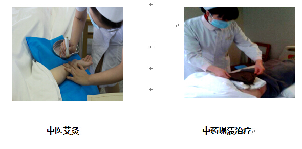 全院开展优质护理服务,重视基础护理落实,突出中医护理特色,15个病区全面实施责任制整体护理,将中医特色运用于临床,已开展穴位按摩、耳穴埋豆、中药湿敷、中药保留灌肠、中药雾化吸入、拔罐、中药外敷、蜡疗、中药熏洗、刮痧、艾灸等16项中医适宜护理技术,穴位贴敷、中药坐浴、足底反射治疗等技术的运用,使广大患者享受了中医独特的疗效,减轻了病人的痛苦。