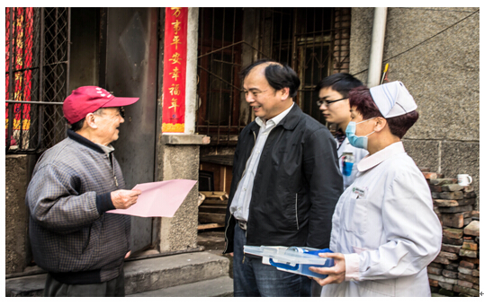 段砚方院长亲自带领慰问组,与政工科长李玉倩、护理部主任沈静,以及4名优秀青年医护人员、社区工作人员,深入辖区5名独居老人的家中,提供上门医疗服务和送爱心慰问活动。