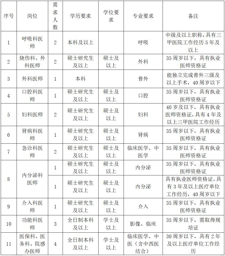 因医院业务发展需要,现面向应往届毕业生进行招聘,热忱欢迎全国广大医学精英踊跃报名。我院中医学、临床类博士招聘不受岗位限制,不限专业,不限名额,择优录用。