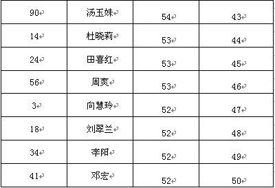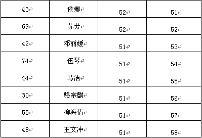 根据《2015年宜昌市宜昌市中医医院招聘护理人员方案》,按照笔试成绩排序,下列人员笔试成绩合格进入面试环节,现予以公示: