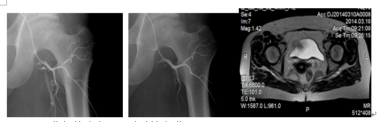 典型病例:女、63岁,2010年10月在我院MR检查发现双侧股骨头缺血性坏死II期,行三次介入术后。2014年复查提示病变基本愈合。