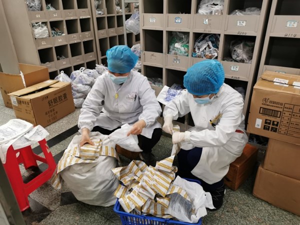 疫情防控期间,面对各地物资紧缺、物流停运的局面,药剂科主任谈发明亲自前往中药材基地参与药材运输工作,确保疫情期间临床所需药品及时配送,同时督促各药房工作人员每日清点疫情所需药物,以保障临床的药品供应;正月初六,药师涂红艳在痛失亲人的巨大悲痛下毅然坚持返回药房一线窗口岗位,参加到抗击疫情的保卫战中,在形式严峻的疫情面前,她用实际行动诠释舍小家顾大家的奉献精神;疫情爆发之时,正在外院学习进修的药师卢云加听闻科室同仁都在加班加点赶制方剂,主动向进修单位申请返院参与中药的熬制工作;药师钱特在休假的情况下主动请缨,积极参与科室各项工作,他说:“我甘当革命一块砖,哪里需要往哪里搬!”。大家心往一处想、劲儿往一处使,高效、及时地完成了医院药品保障各项工作任务。
