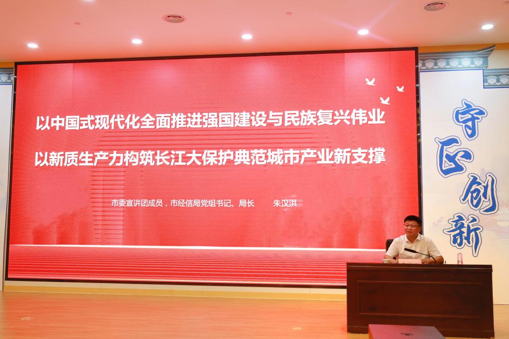 报告会上,朱汉洪局长以《以中国式现代化全面推进强国建设与民族复兴伟业 以新质生产力构筑长江大保护典范城市产业新支撑》为题,从深刻把握全会的重大意义、深刻把握习近平总书记重要讲话精神、深刻把握深化改革的重大举措和深刻把握贯彻落实的基本要求四个方面,系统阐述和深刻讲解了全会精神,为我院党员干部坚定不移地把全会精神落实到具体行动上指明了方向。