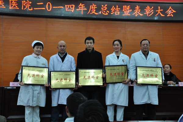 副院长周继刚宣读了宜昌市中医医院关于表彰2014年度先进科室、先进工作者的通知,市卫计委与院领导班子为针灸科等5个先进科室、耳鼻喉科等6个单项奖科室、李厚东等78名先进个人、叶攀等10名“青年医师业务贡献奖”及高元喜等5名“年度患者最满意医务人员”颁发奖牌和荣誉证书。