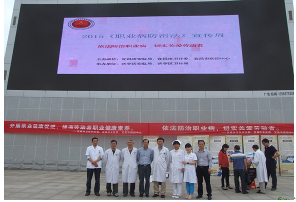 根据国家卫生计生委、中央宣传部、人力资源社会保障部、国家安全监管总局、全国总工会等5部委的要求及市卫计委、市安全生产监督管理局的部署,为深入宣传贯彻职业卫生有关法令,积极开展以“依法防治职业病,切实关爱劳动者”为主题的2015年《职业病防治法》宣传周活动,我院于4月29日组织职业卫生技术专家赴猇亭工业园区,开展了《职业病防治法》及职业健康知识宣传和咨询、职业健康多学科义诊活动。