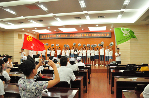 6月11日,宜昌市中医医院“杏林青年”学雷锋志愿者服务队标识发布活动在行政楼七楼多功能厅隆重举行,共青团宜昌市委员会宣传部部长刘丽华、共青团宜昌市卫计委委员会书记陈从为、宜昌市中医医院党委书记邱绍勤、副院长周继刚出席活动。全院青年志愿者、团员代表近100人参与活动。