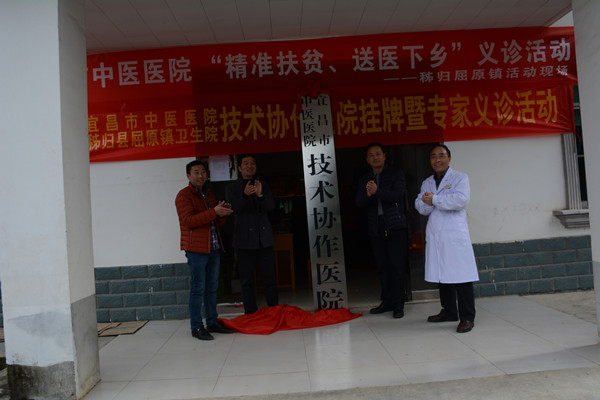 义诊结束后,市中医医院还与屈原镇卫生院举行了技术协作挂牌仪式,市中医医院党委书记邱绍勤、屈原镇党委书记、人大主席谭国际参与揭牌。据“精准扶贫”驻村工作队统计,屈原乡凤凰溪村贫困户中有70%为因病返贫,今后市中医医院将在医疗人员培训、技术支持、项目合作等方面给予屈原镇大力支持和无偿援助,通过援助和帮扶,不断提高当地的中医药发展能力和诊疗水平,为保障当场村民的健康办实事。