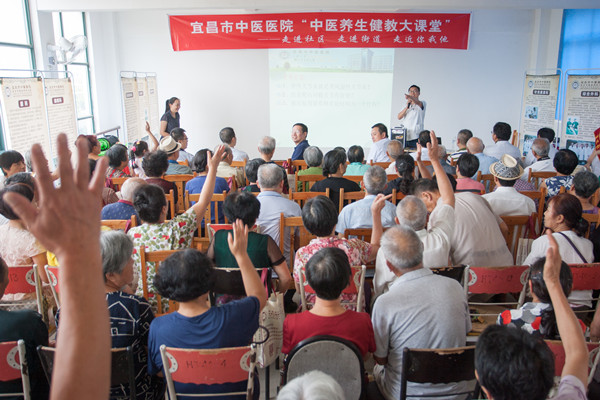 8月 31日下午,宜昌市中医医院“中医养生健教大课堂”活动首次走出医院,走进社区。医院派出了12名专家来到了航天花园小区为大家送医送药送健康。活动内容包括中医药健康知识讲座、中医体质辨识及义诊,中草药辨识宣讲等,现场200余名市民积极踊跃参加。