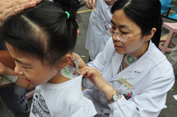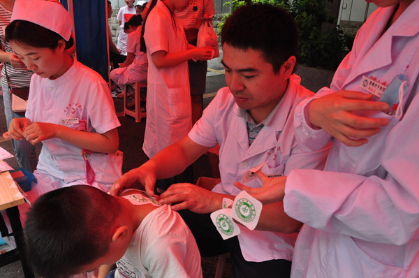 “我们是来给孙子贴三伏贴的。”50多岁的张先生特地带4岁的孙子来到现场。“孙子从两岁左右开始就爱咳嗽,肠胃不好,吃了很多药都不见好,去年夏天来中医医院贴过‘三伏贴’之后,感觉效果很明显,这半年时间他爱咳嗽的毛病得到了很好的控制,所以今天继续带他过来贴。”